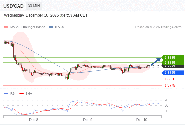 在 1.3825 之上,看涨,目标价位为 1.3865 ,然后为 1.3885 。