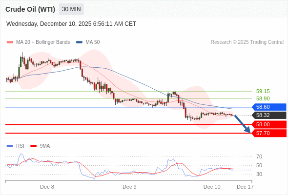 在 58.60 之下,看跌,目标价位为 58.00 ,然后为 57.70 。