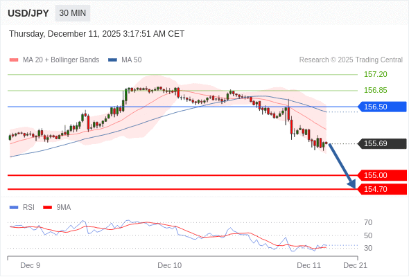 在 156.50 之下,看跌,目标价位为 155.00 ,然后为 154.70 。