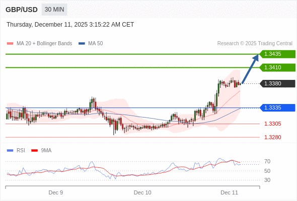 在 1.3335 之上,看涨,目标价位为 1.3410 ,然后为 1.3435 。