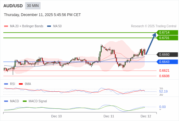 澳元/美元 当日内 : 看涨,当 0.6643 为支撑位。