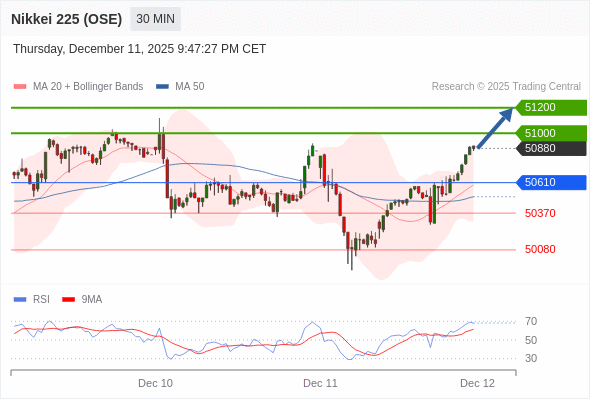 在 50610 之上,看涨,目标价位为 51000 ,然后为 51200 。