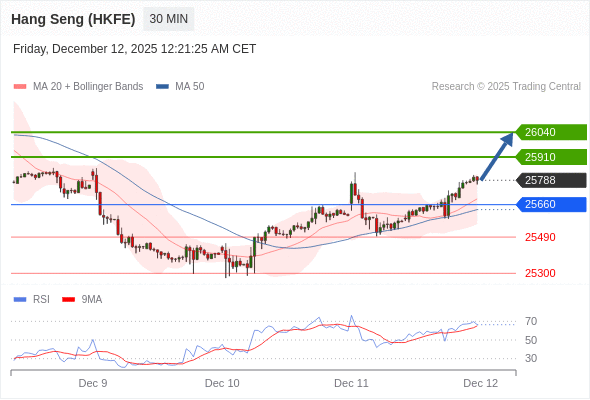 在 25660 之上,看涨,目标价位为 25910 ,然后为 26040 。