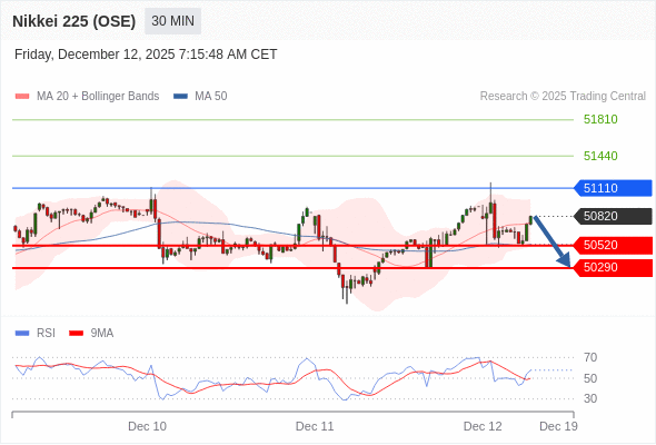 在 51110 之下,看跌,目标价位为 50520 ,然后为 50290 。