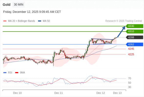 在 4262 之上,看涨,目标价位为 4310 ,然后为 4330 。