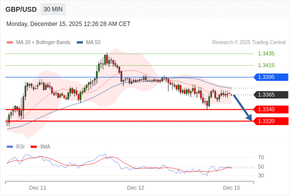 在 1.3395 之下,看跌,目标价位为 1.3340 ,然后为 1.3320 。