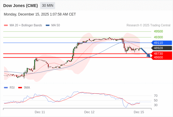 在 49110 之下,看跌,目标价位为 48730 ,然后为 48600 。