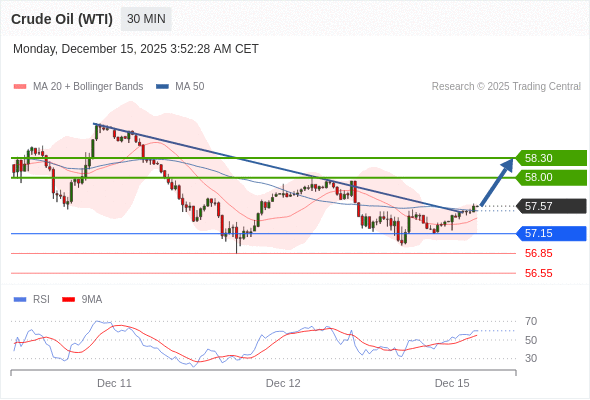 交易策略: 在 57.15 之上,看涨,目标价位为 58.00 ,然后为 58.30 。