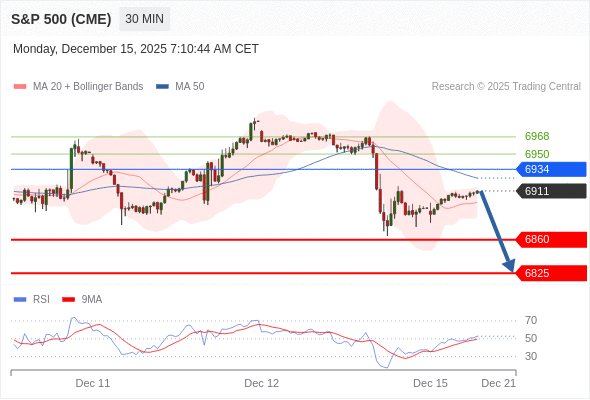 在 6934 之下,看跌,目标价位为 6860 ,然后为 6825 。