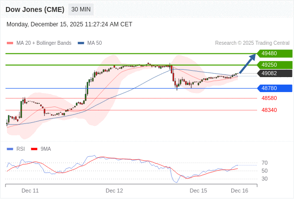 在 48780 之上,看涨,目标价位为 49250 ,然后为 49480 。