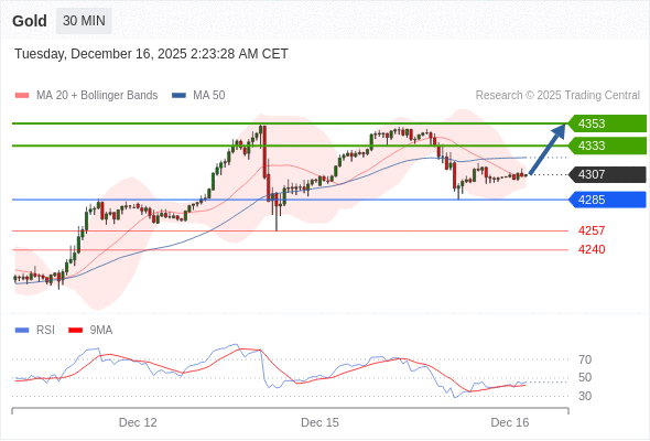 在 4285 之上,看涨,目标价位为 4333 ,然后为 4353 。