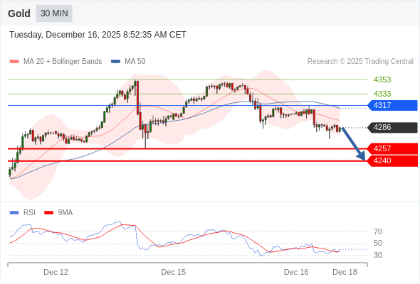 在 4317 之下,看跌,目标价位为 4257 ,然后为 4240 。