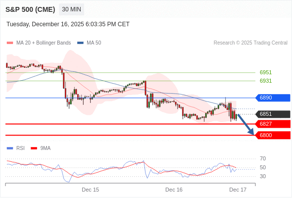 交易策略: 在 6890 之下,看跌,目标价位为 6827 ,然后为 6800 。