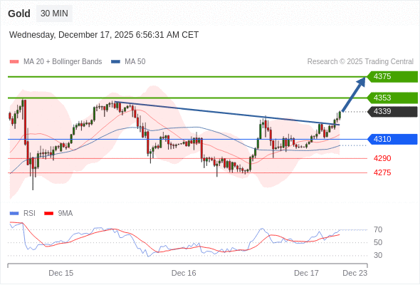 在 4310 之上,看涨,目标价位为 4353 ,然后为 4375 。