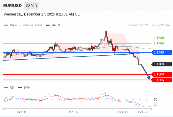 在 1.1740 之下,看跌,目标价位为 1.1680 ,然后为 1.1665 。