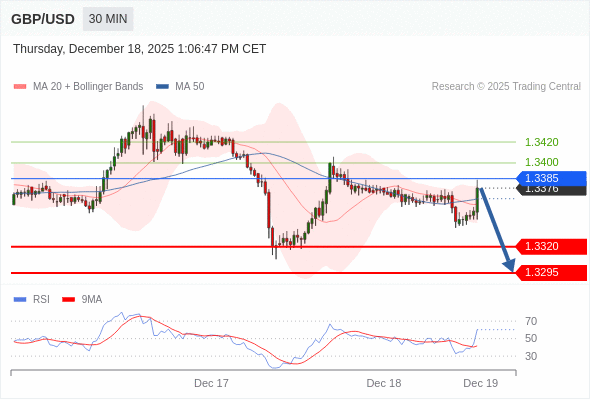 在 1.3385 之下,看跌,目标价位为 1.3320 ,然后为 1.3295 。