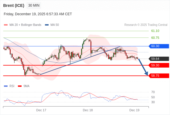在 60.30 之下,看跌,目标价位为 59.30 ,然后为 58.75 。