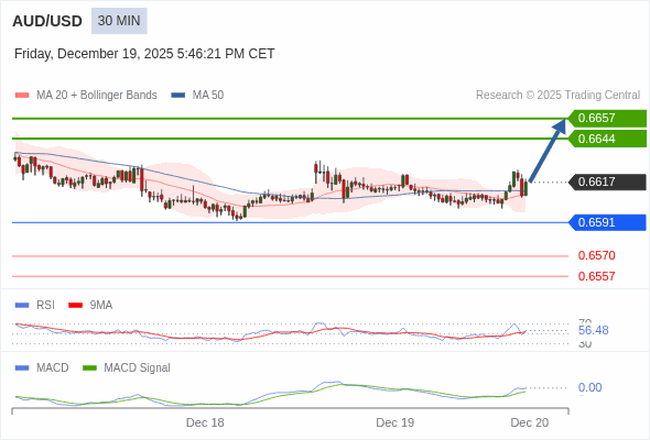 澳元/美元 当日内 : 看涨,当 0.6591 为支撑位。