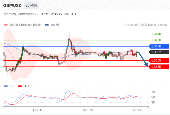 在 1.3400 之下,看跌,目标价位为 1.3355 ,然后为 1.3335 。