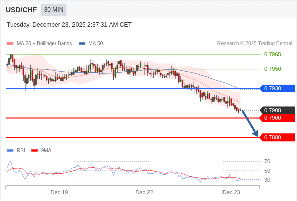 在 0.7930 之下,看跌,目标价位为 0.7900 ,然后为 0.7880 。