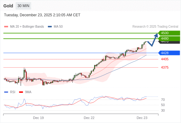 在 4428 之上,看涨,目标价位为 4480 ,然后为 4500 。
