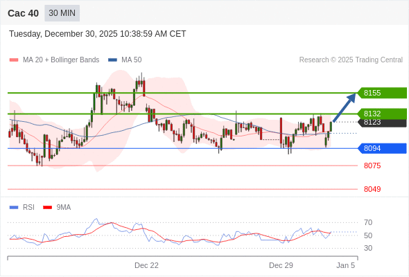 在 8094 之上,看涨,目标价位为 8132 ,然后为 8155 。