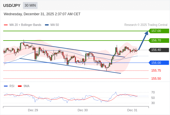 在 156.00 之上,看涨,目标价位为 156.70 ,然后为 157.00 。