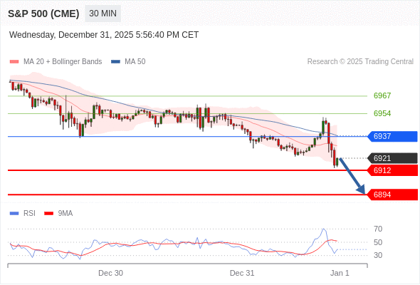 在 6937 之下,看跌,目标价位为 6912 ,然后为 6894 。