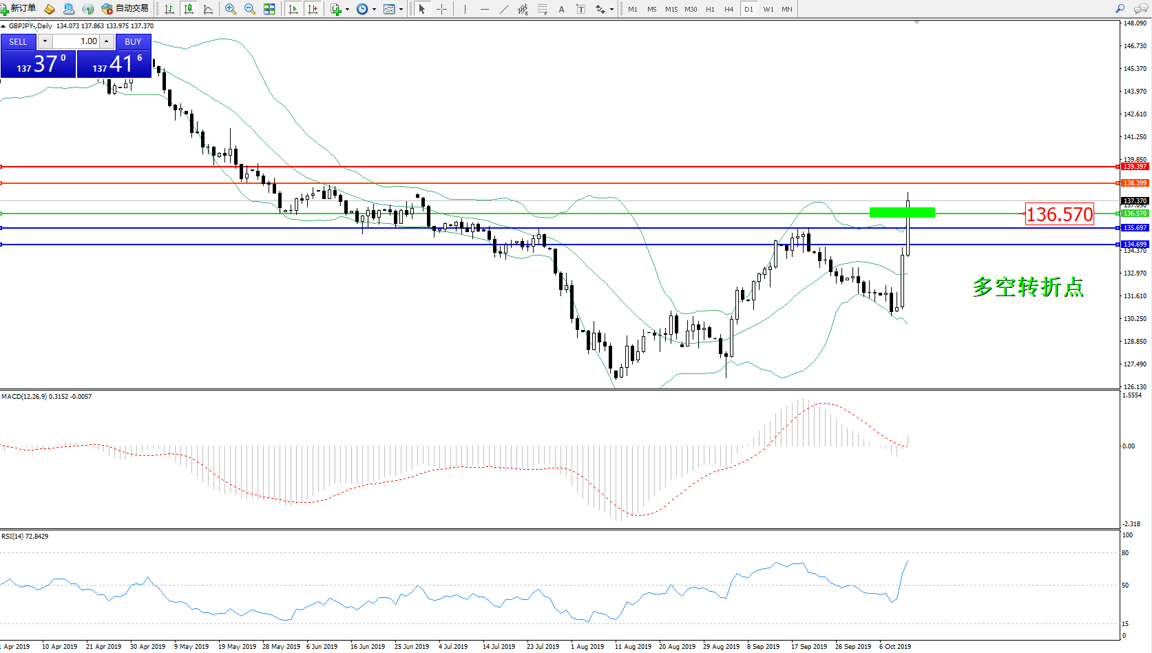 多空转折点:136.570