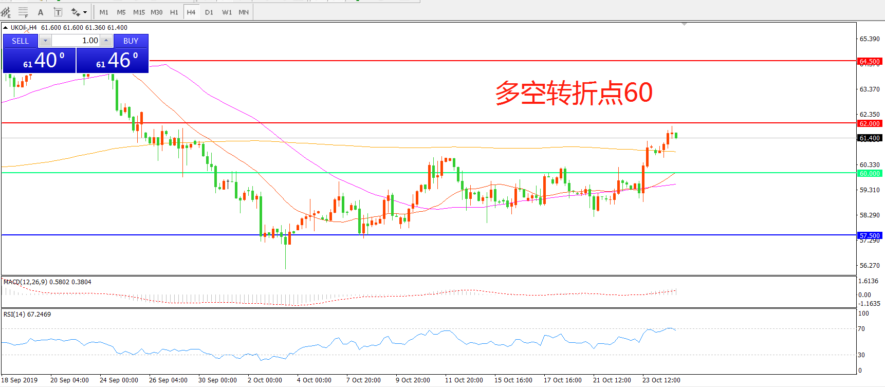 多空转折点:60.00