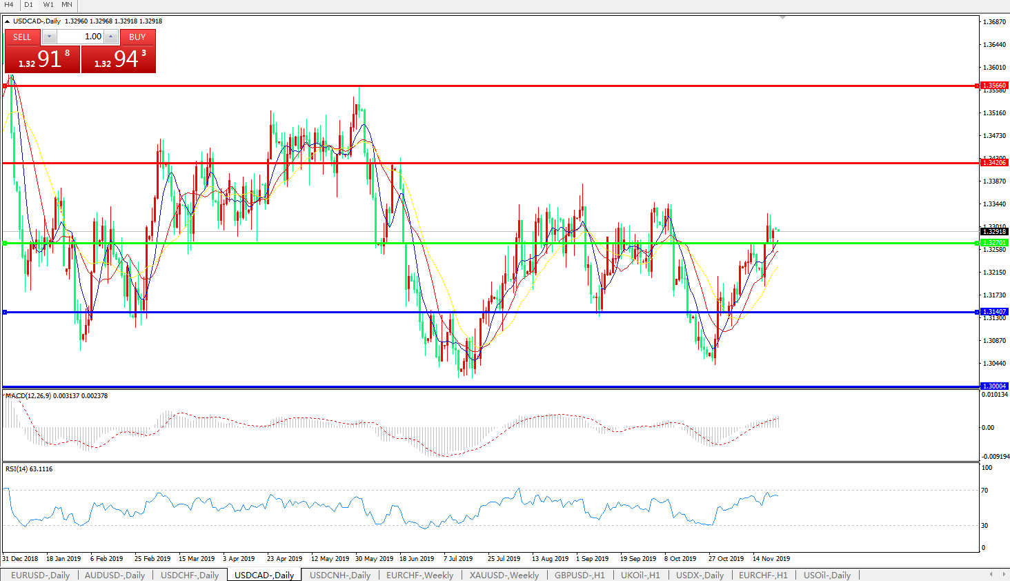 美元兑加元USDCAD    日线图: