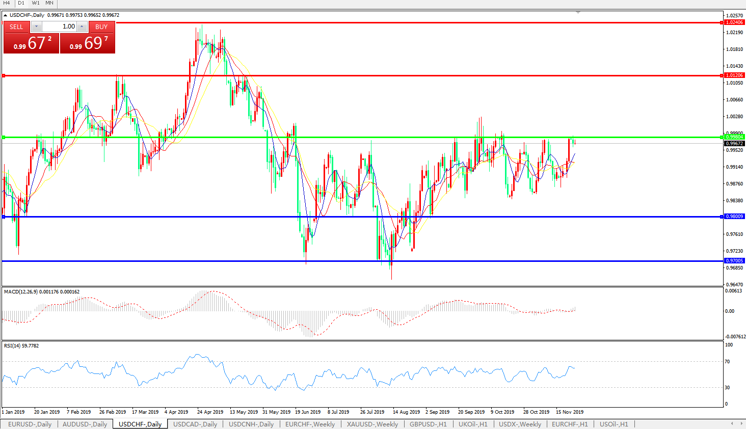 美元兑瑞郎USDCHF    日线