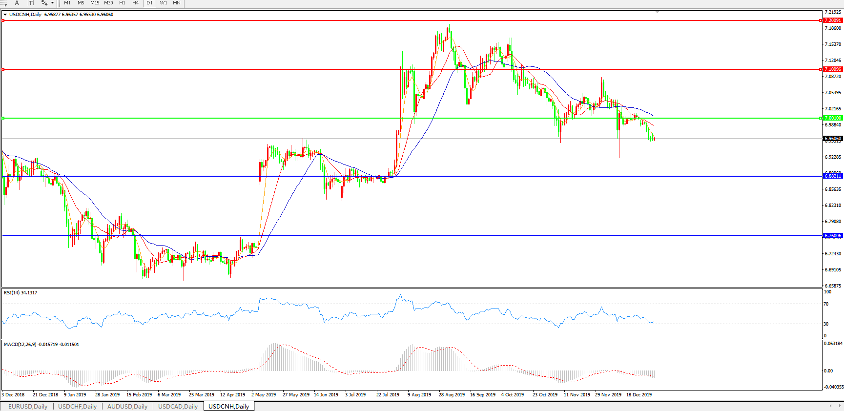 交易策略: 在7.0000之下,看跌,目标价位为6.8820,然后为6.7600。