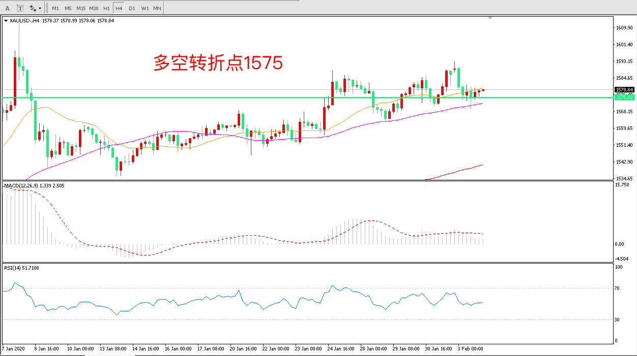 多空转折点:1575.00