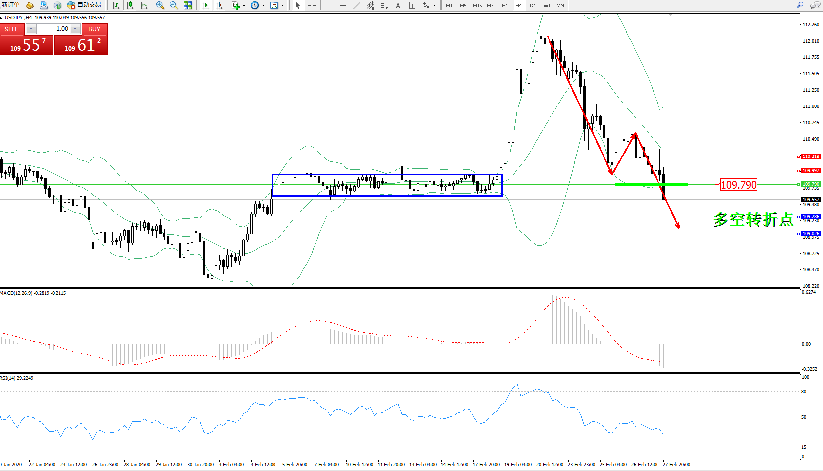 交易策略:109..790下方看跌,目标109.286109.026