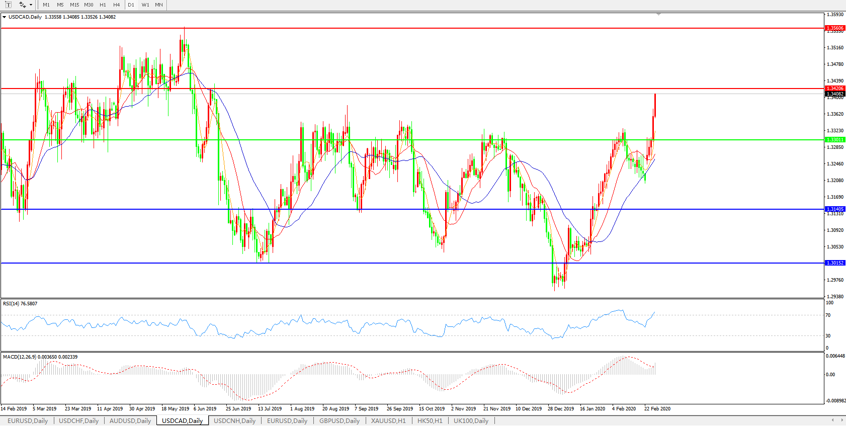 美元兑加元USDCAD    日线图: