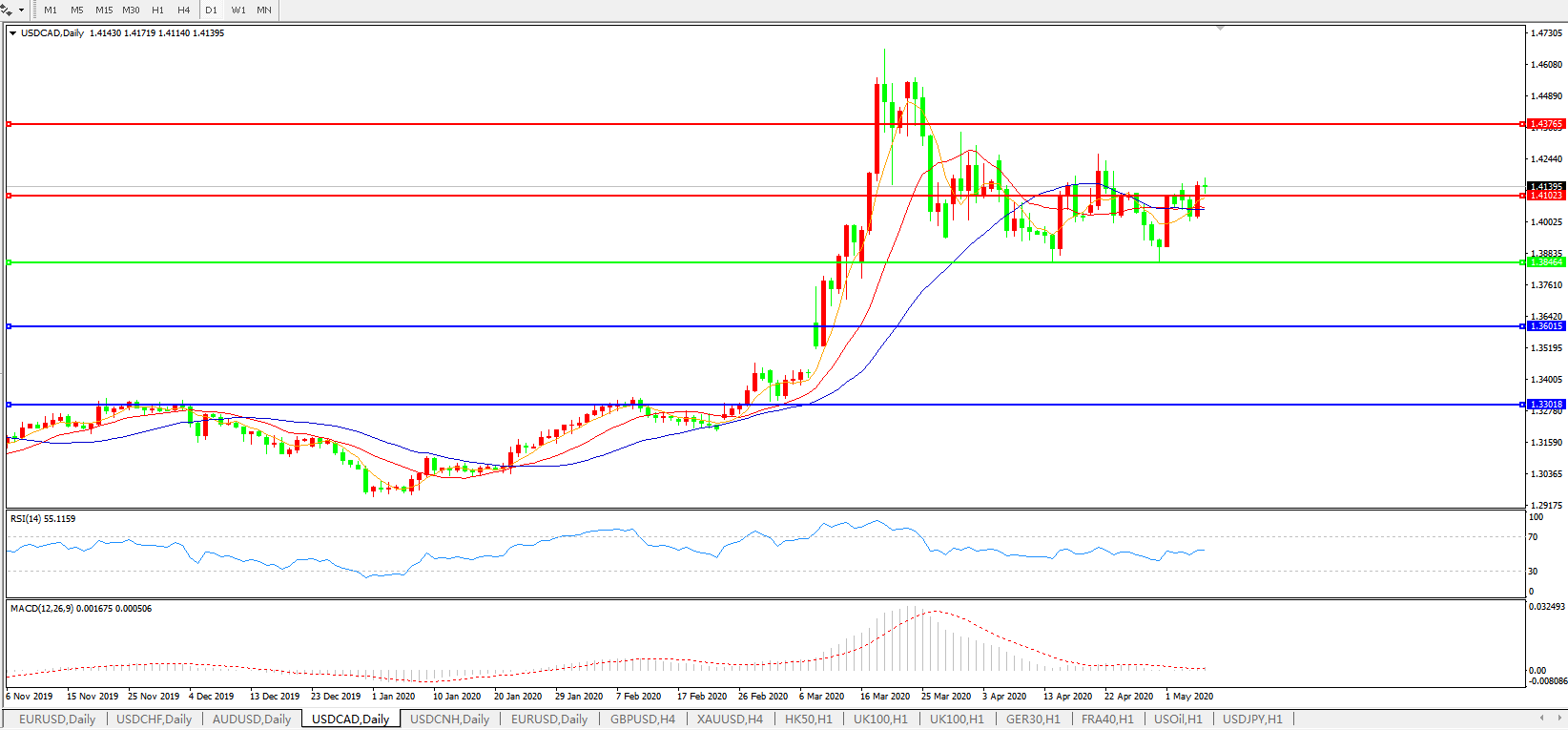 美元兑加元USDCAD 日线图: