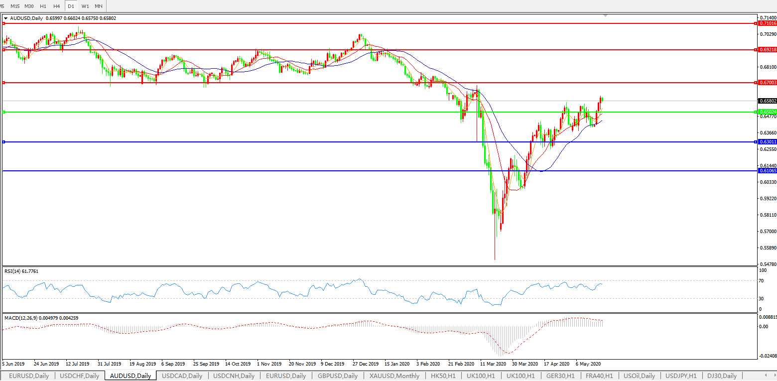 交易策略:0.6500上方看涨,目标0.6700、0.6920