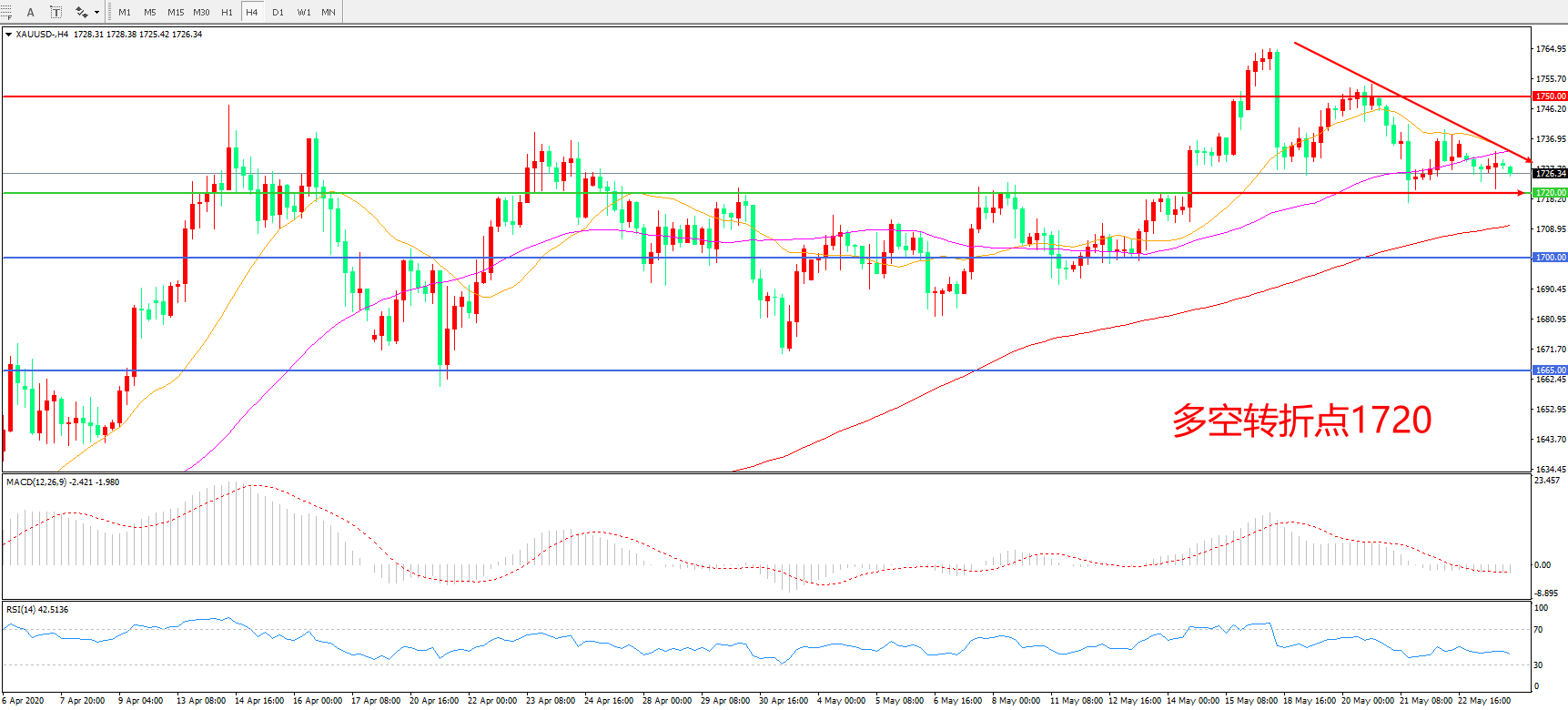 多空转折点:1720.00