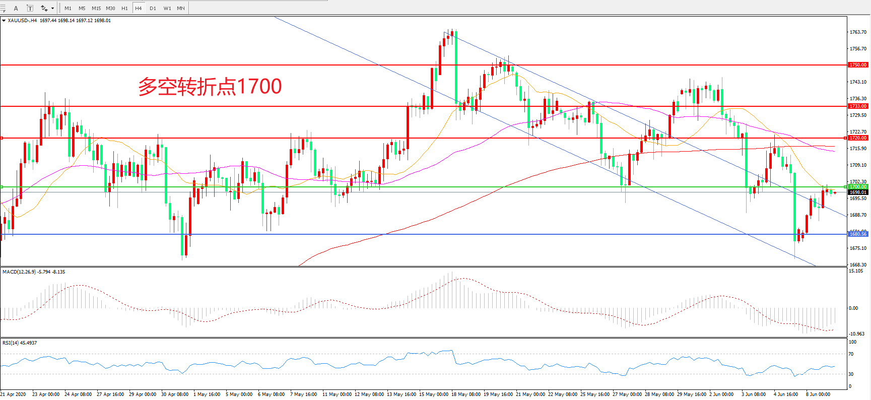 交易策略: 在1700.00之下看跌,目标1680.00 1665.00