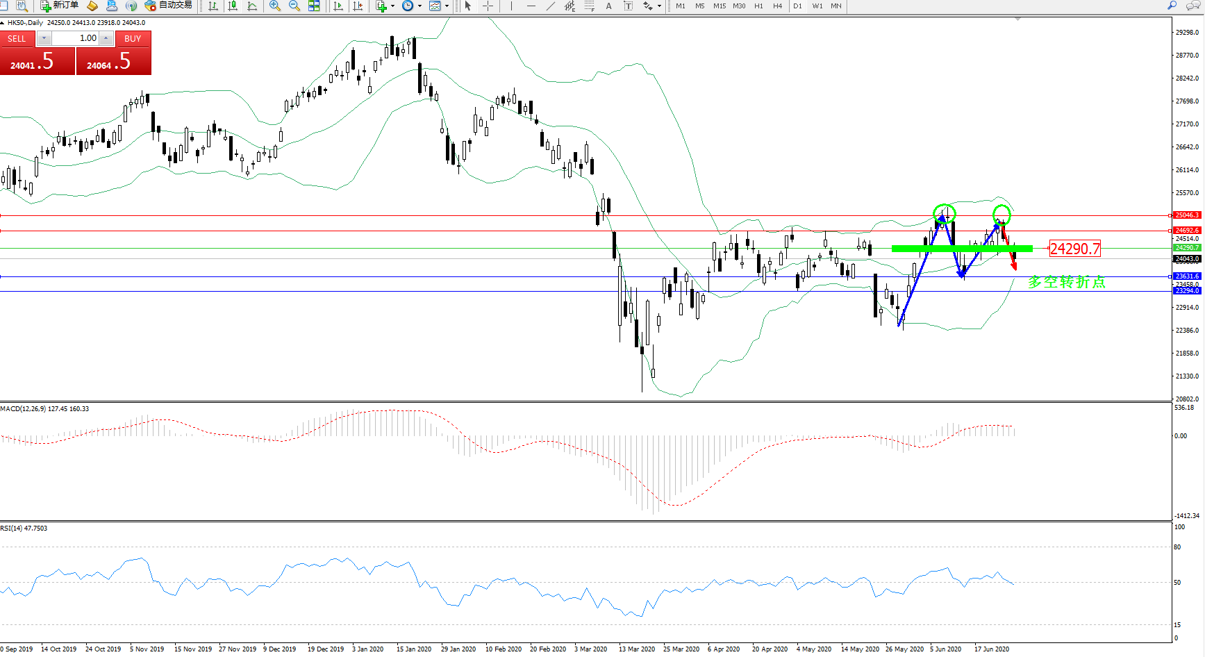 恒指HK50 ——日K线图显示: