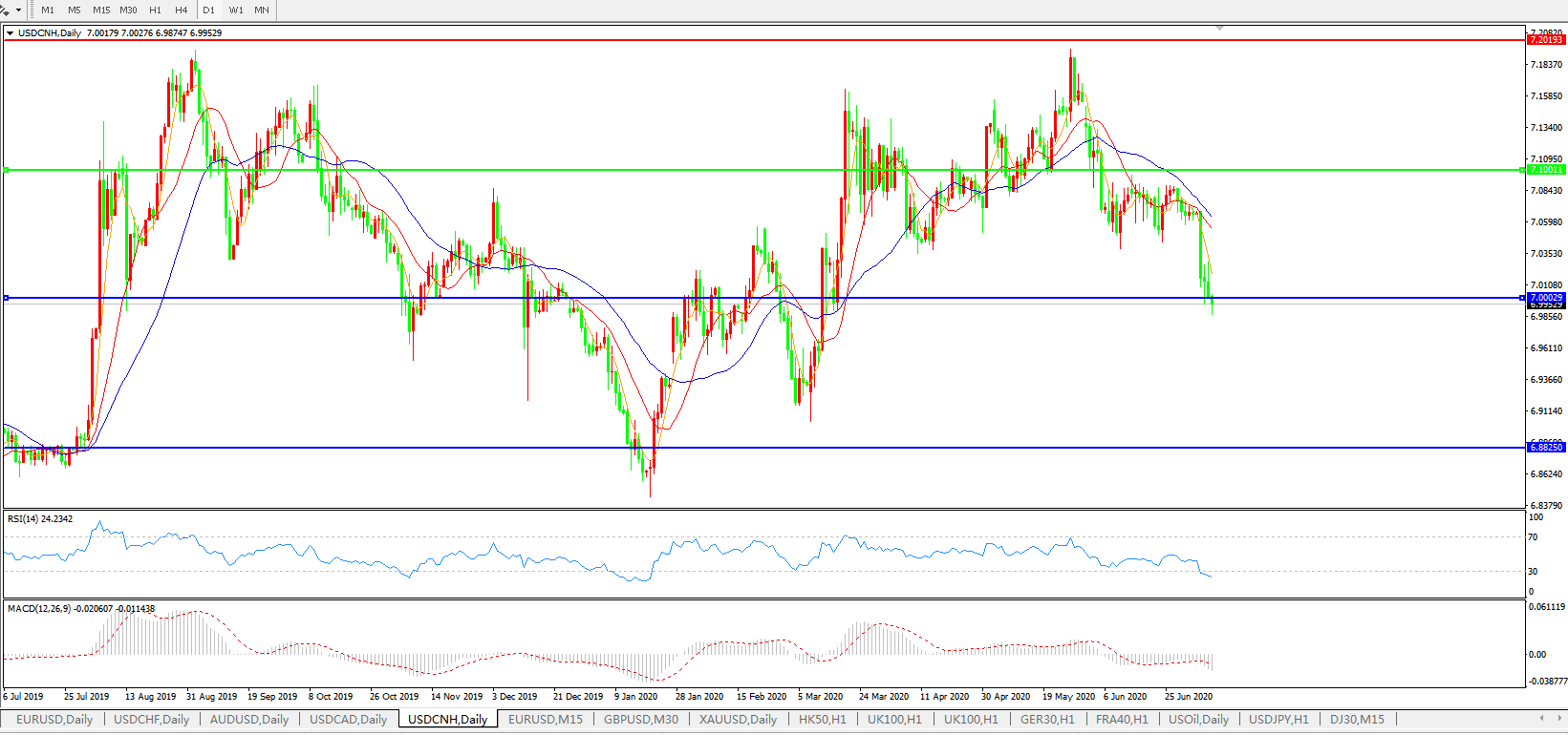 交易策略: 在7.1000之下,看跌,目标价位为7.0000,然后为6.8820。