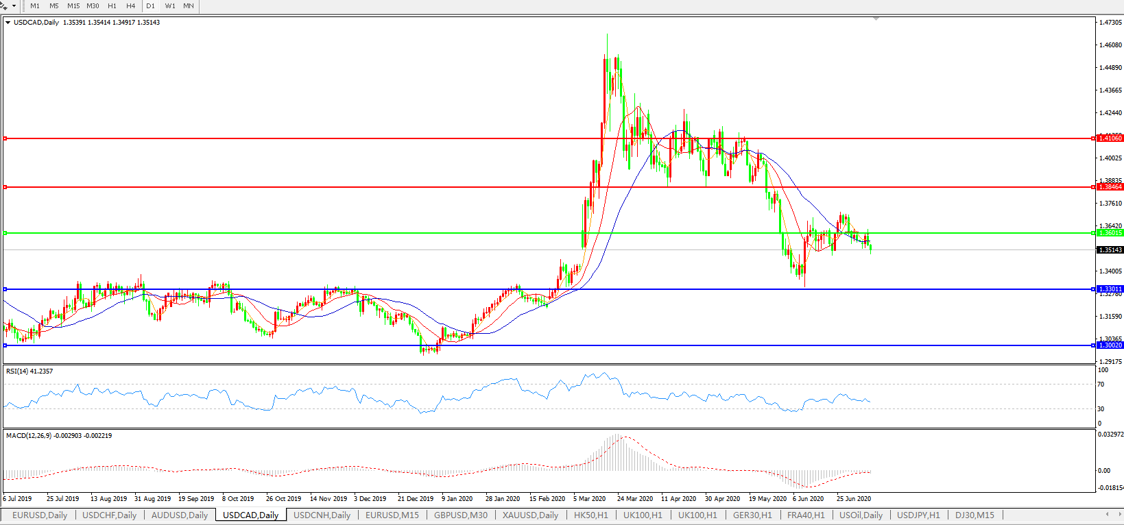 交易策略:在1.3600之下,看跌,目标价位为1.3300、1.3000