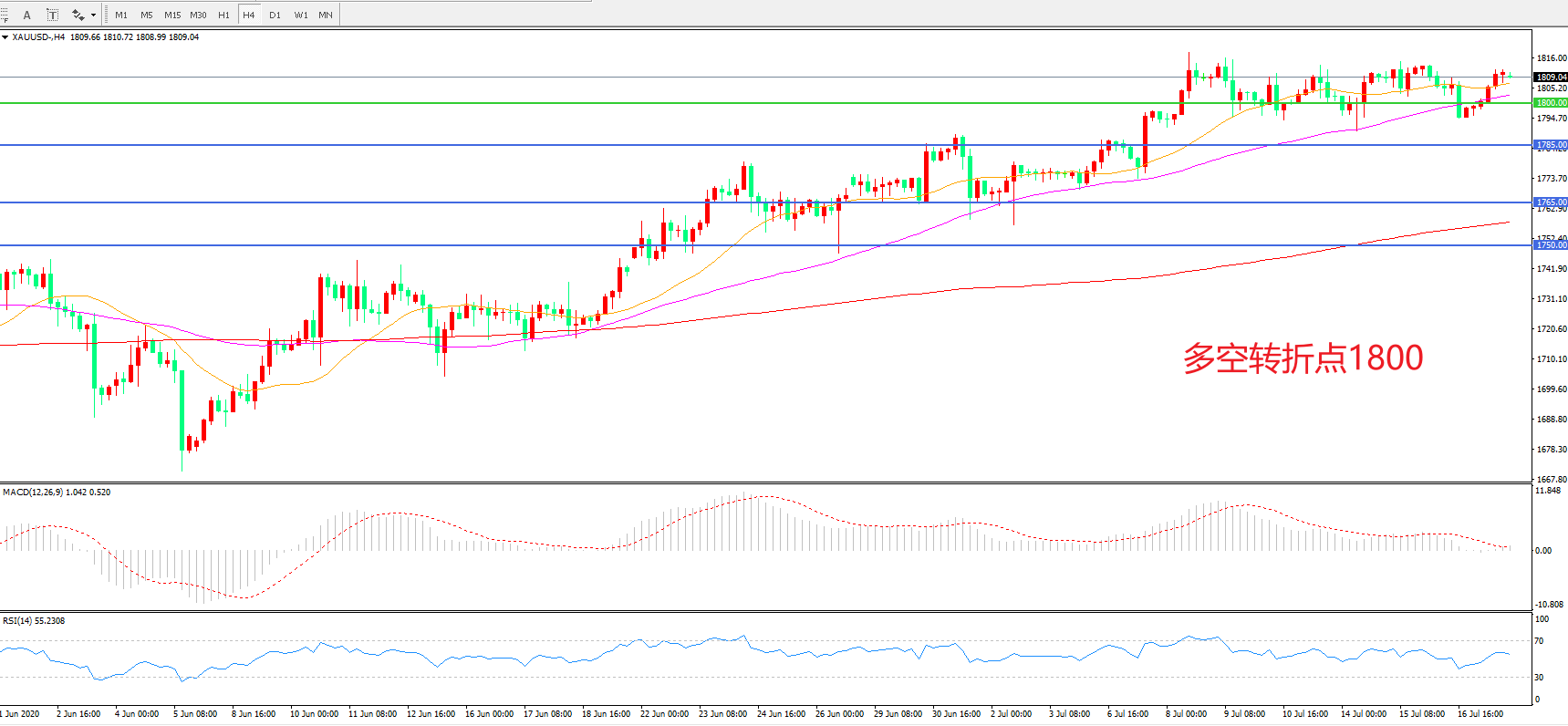 多空转折点:1800.00