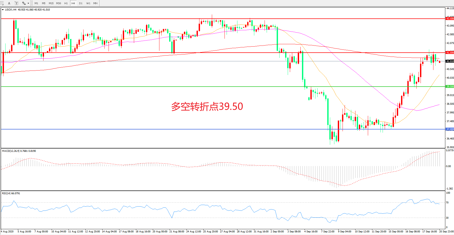 交易策略:在39.50之上看涨,目标41.50 43.50