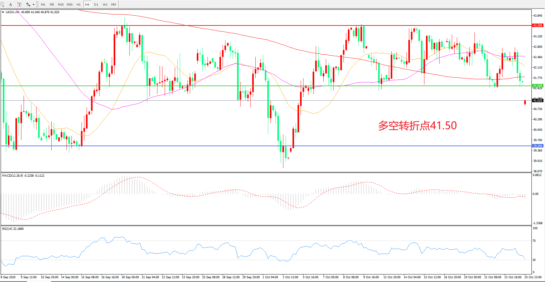 交易策略: 在41.50之下看跌,目标39.50 37.00