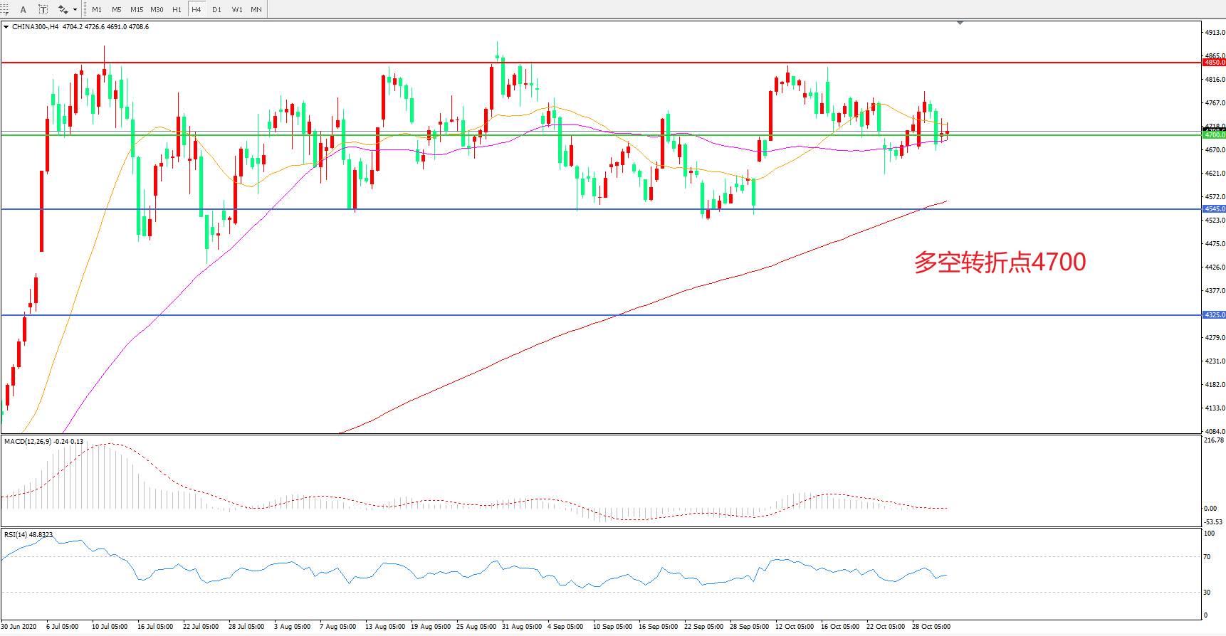 多空转折点:4700.00