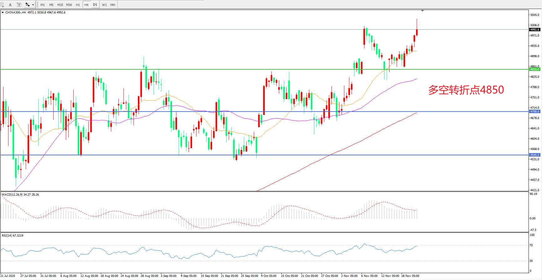 多空转折点:4850.00