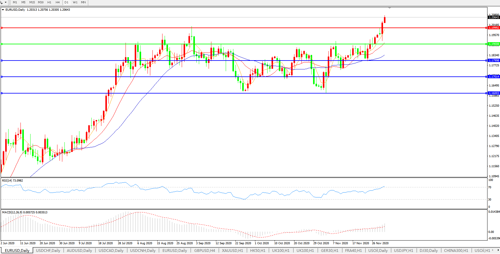 欧元兑美元EURUSD 日线图:
