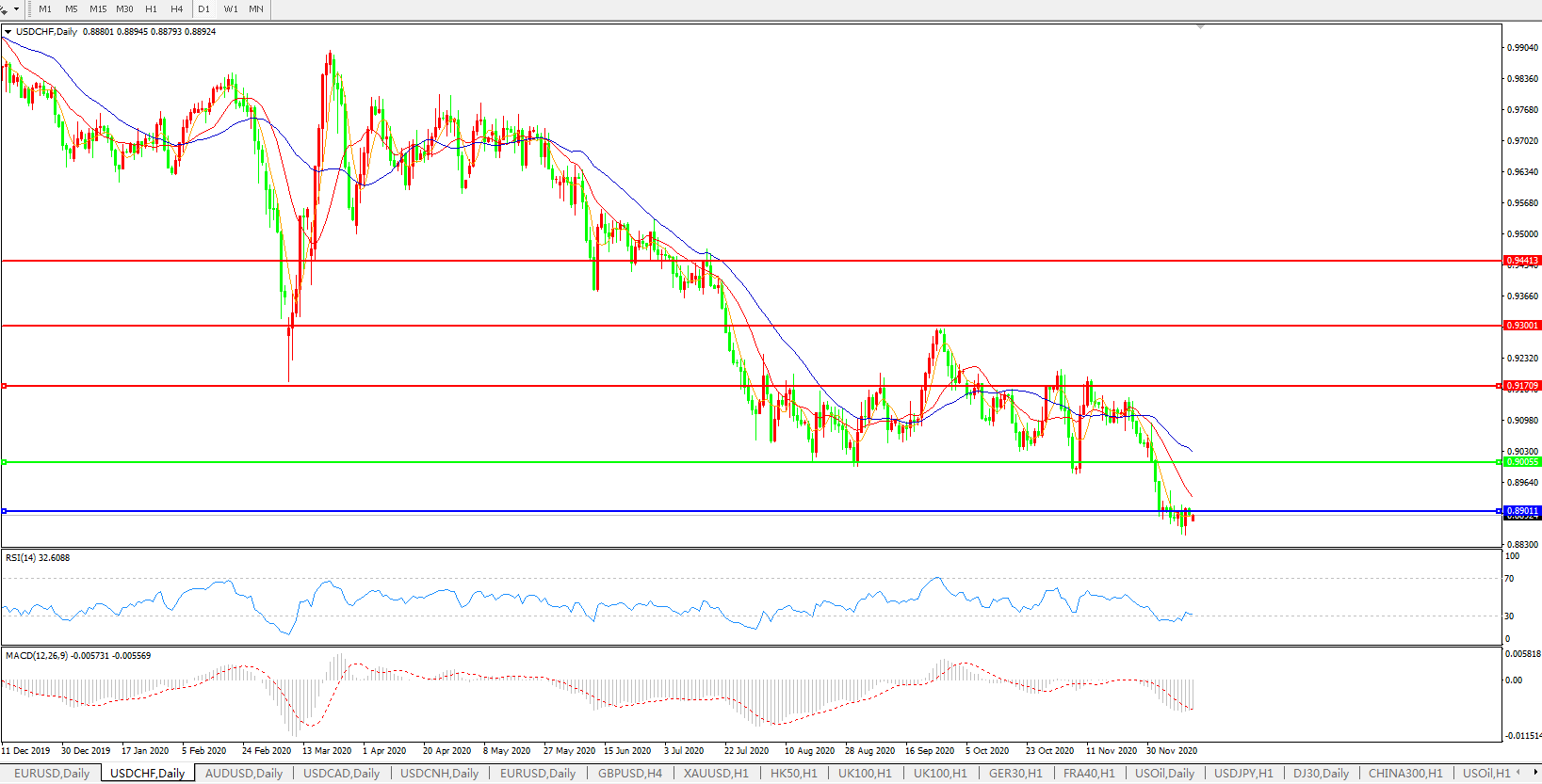 美元兑瑞郎USDCHF    日线图: